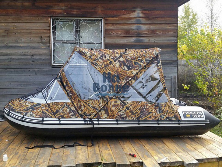 Легкость сборки: конструкция позволяет быстро и легко собирать и разбирать тент, даже находясь в лодке.