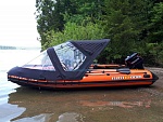 Легкость трансформации: возможность быстро отстегнуть достройку и использовать только носовой тент. Носовой тент также можно использовать, как отдельно от всей конструкции, так и в сочетании с крышей, подняв остальные части тента.
